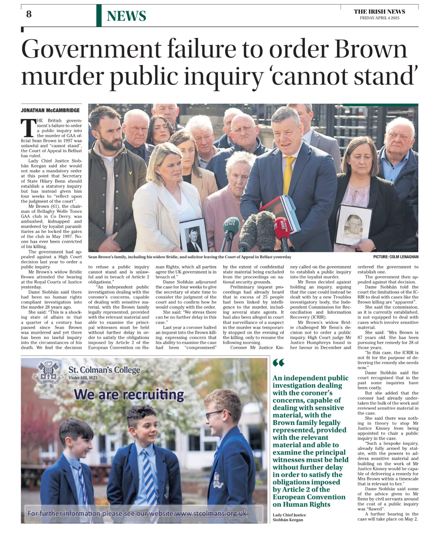 14 Apr Irish News: Family of teenager killed by loyalists believes there was collusion