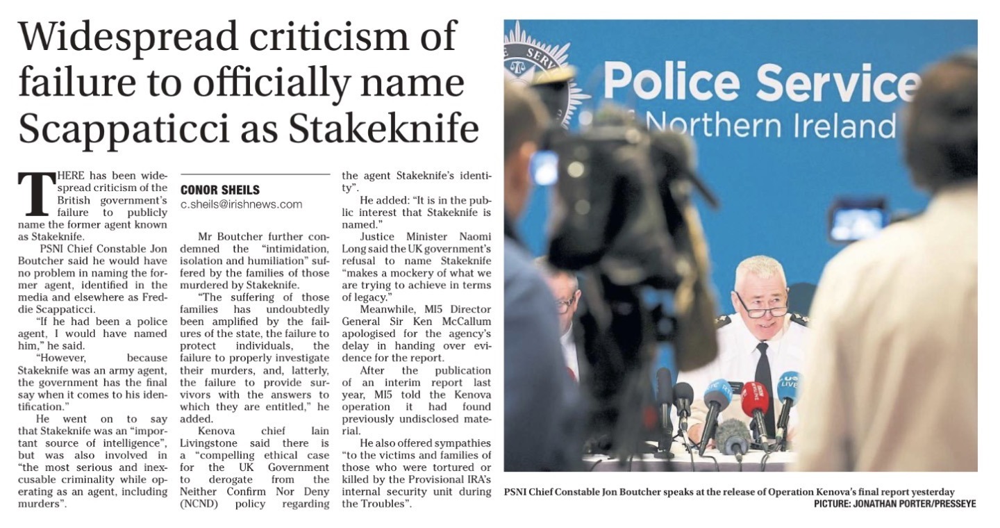 11 Dec Irish News: Widespread criticism of failure to officially name Scappaticci as Stakeknife Posted at 09:45h in Media Archive Read More