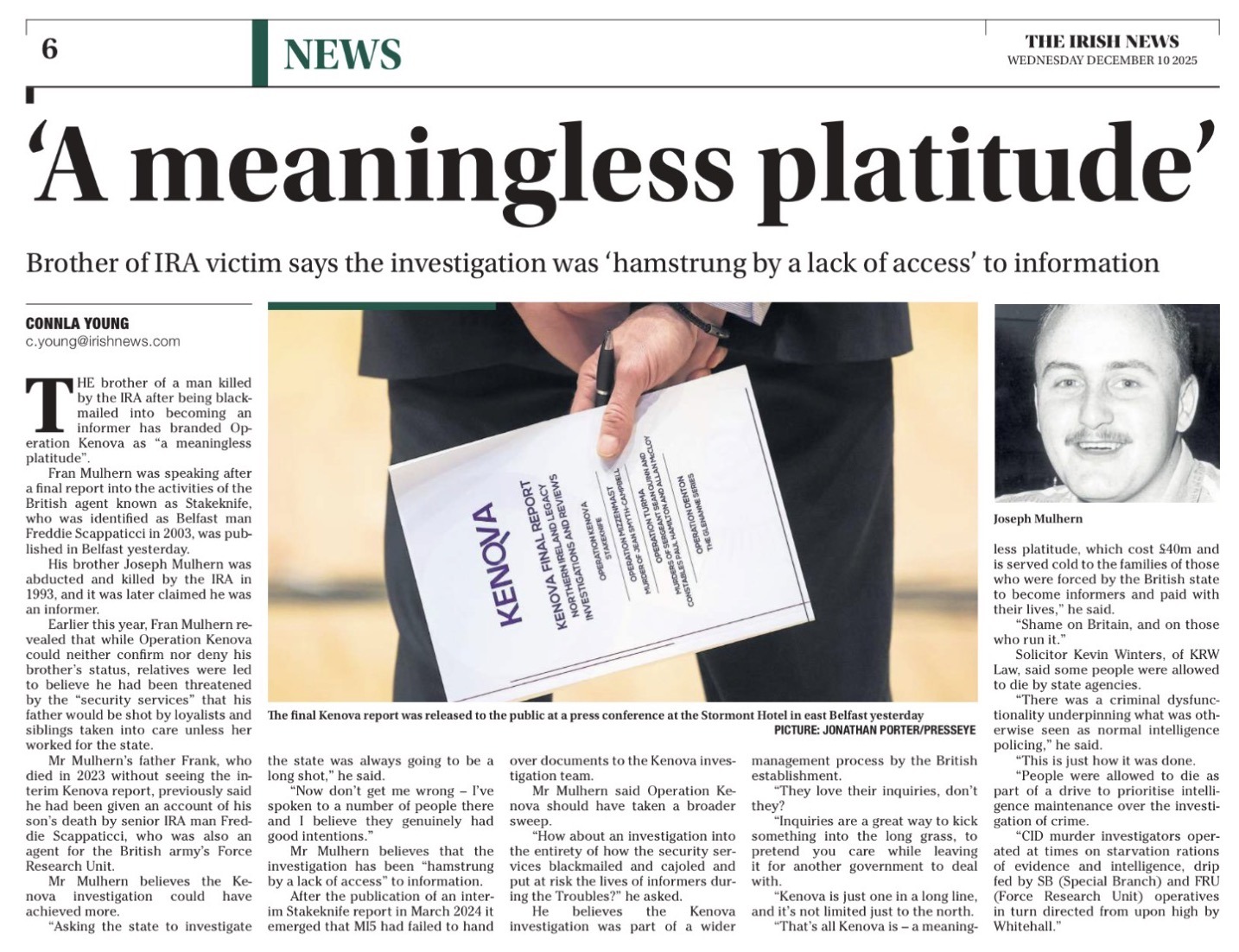 11 Dec Irish News: MI5 broke into Kenova’s safe… and army took Scap on hols Posted at 09:43h in Media Archive Read More