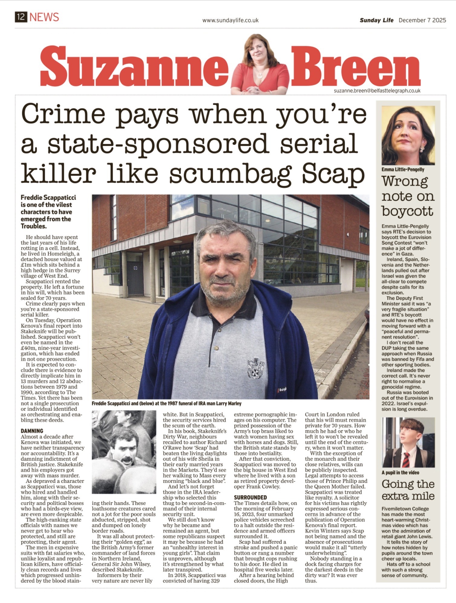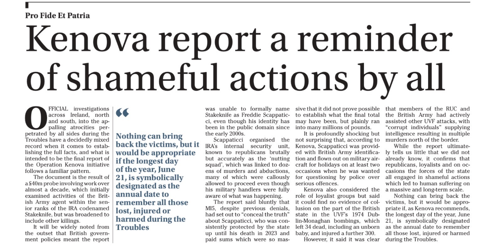 11 Dec Irish News: Kenova report a reminder of shameful actions by all
