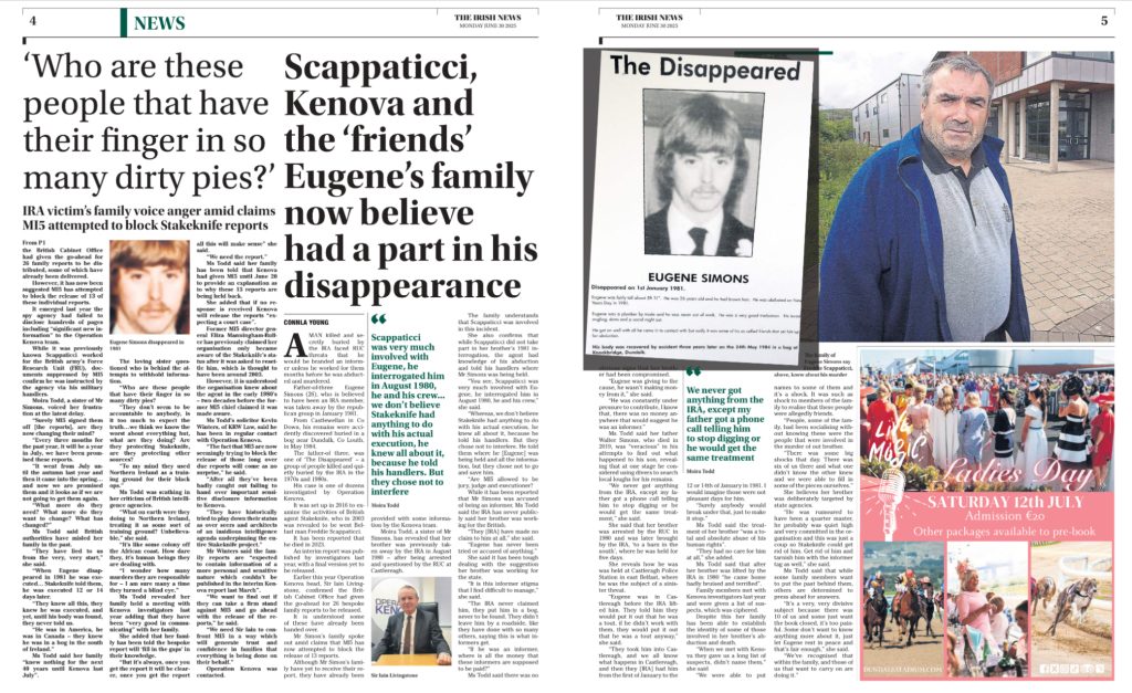 30 Jun Irish News: IRA victim family’s anger as MI5 ‘bids to block’ Stakeknife reports Posted at 09:52h in Media Archive by admin